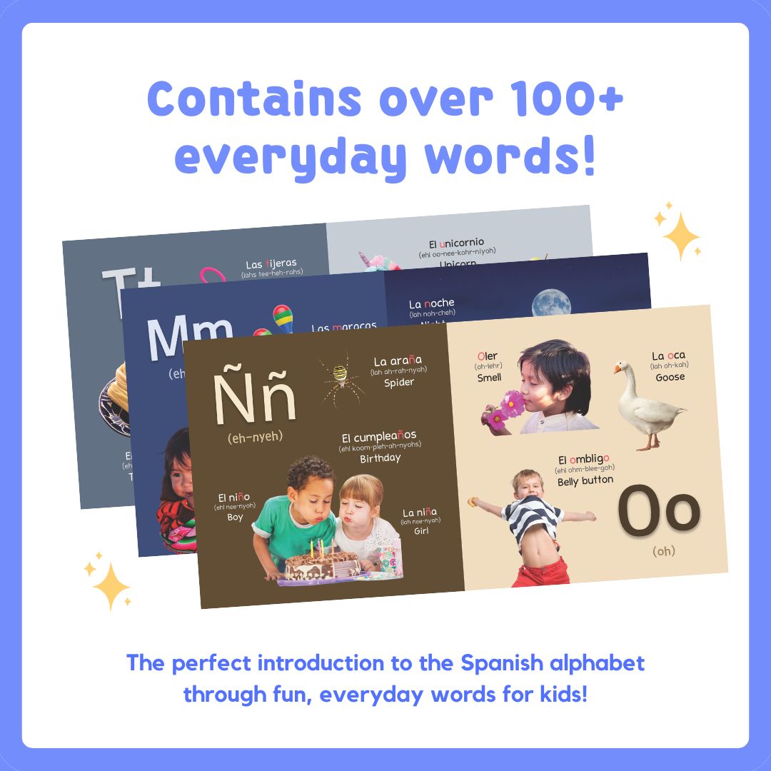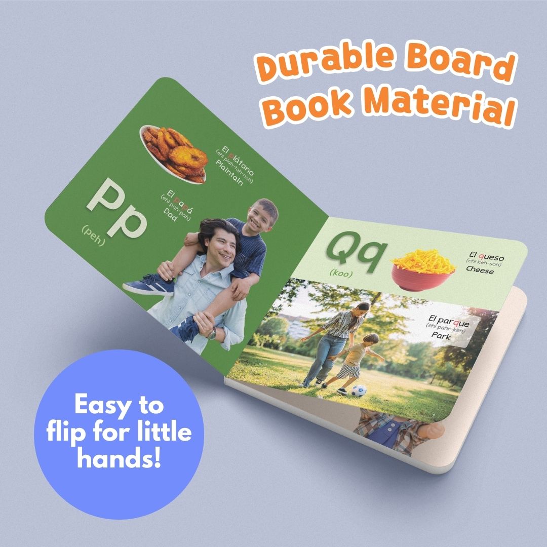 My First Spanish Alphabet is the perfect book to introduce children to the Spanish alphabet and words. Durably bound in board book form, the book contains over a hundred words that will help build your child’s vocabulary and knowledge of Spanish letters, while also encouraging a love of reading. The words are accompanied by vivid photographs that are translated into Spanish, English, including a pronunciation guide which will help all members of the family read and speak Spanish words in no time.