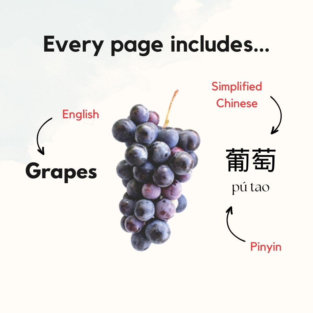 - Explore over a hundred words written in Simplified Chinese, English, and Pinyin